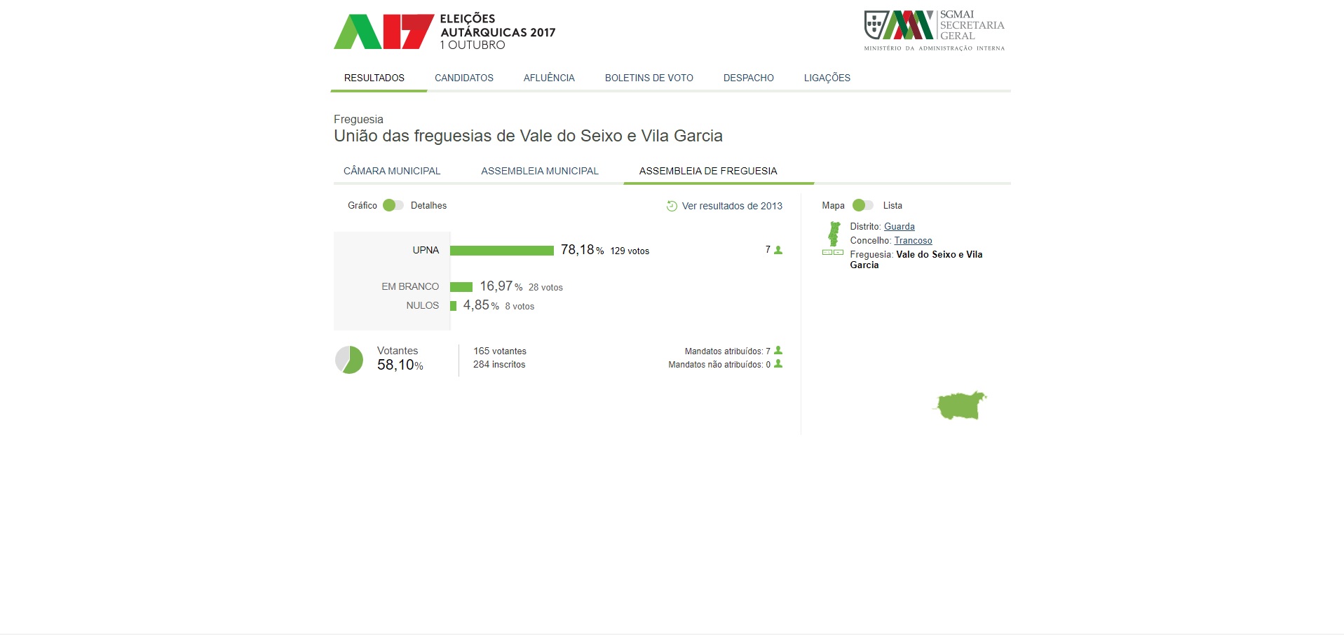 Resultados da União de Freguesias de Vale do Seixo e Vila Garcia